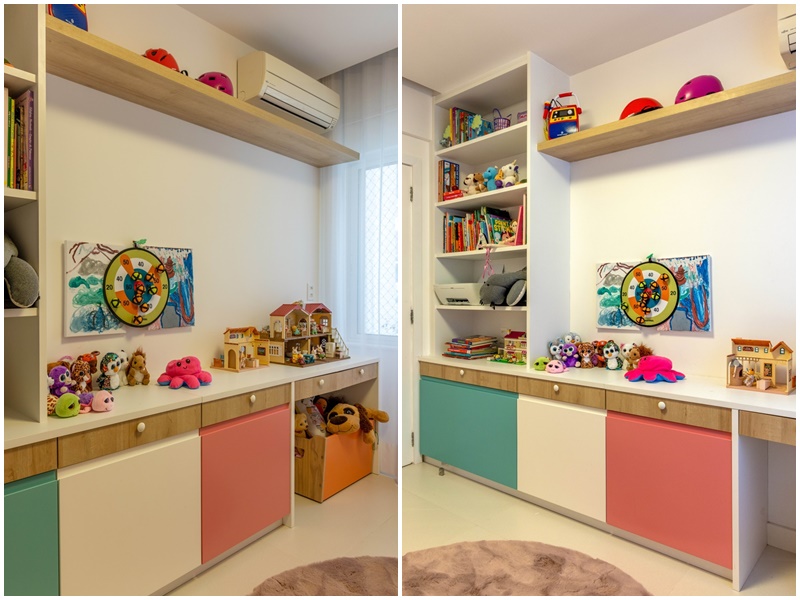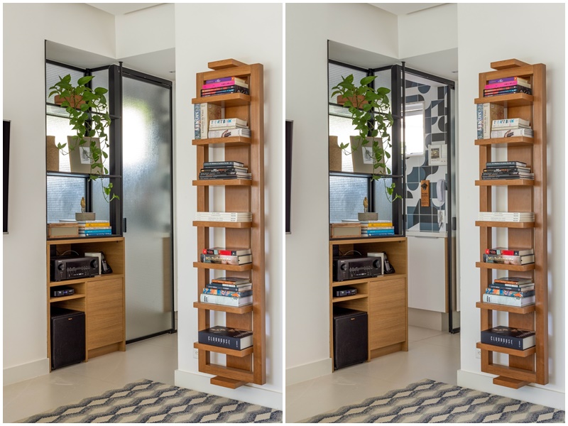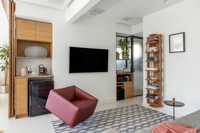 Na área de serviço, o quarto foi realocado e redimensionado para se adequar ao novo estilo de vida da família, ampliando ainda mais a sala.