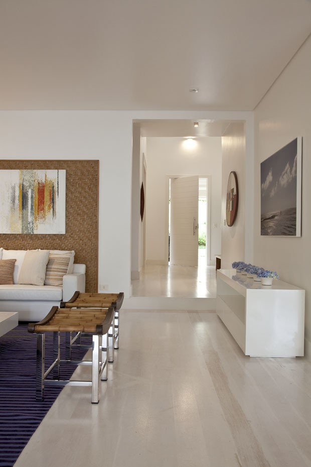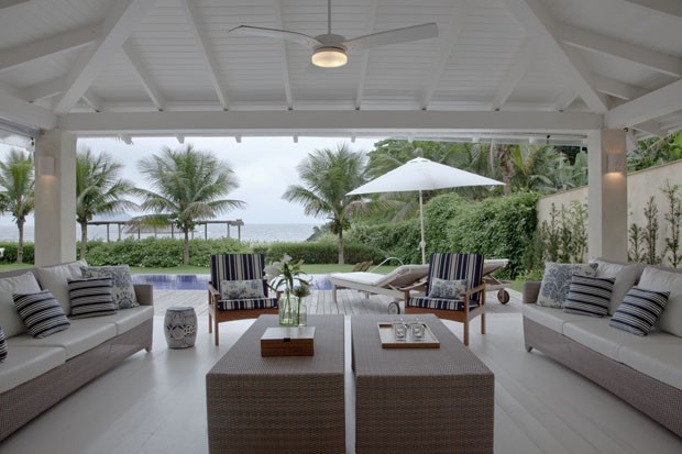 “A ideia principal era criar uma circulação ampla, para receber os moradores e hóspedes confortavelmente. Pensando nisso, tomei cuidado para não exagerar na quantidade de móveis e foquei em materiais mais resistentes à água e à maresia”, conta a arquiteta.