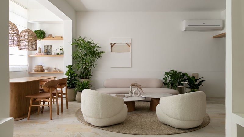 - Estilo da decoração do apartamento como um todo: Estilo que valoriza a simplicidade, os materiais naturais, tons leves, luz natural e o design nacional.