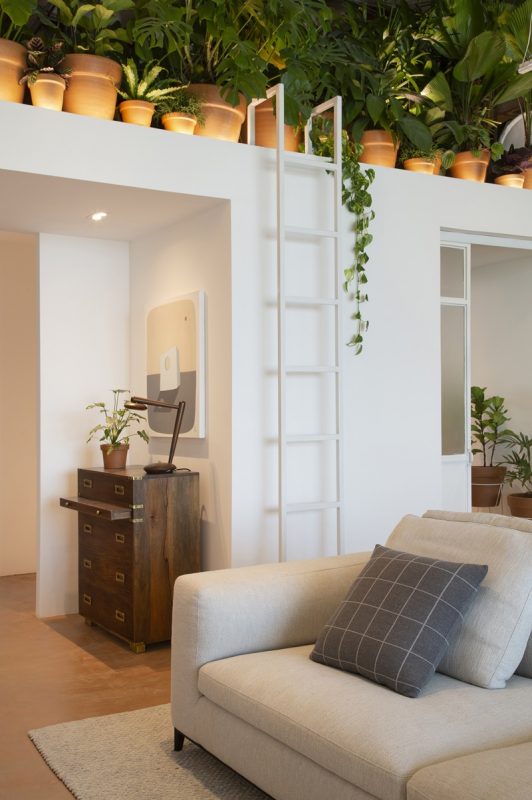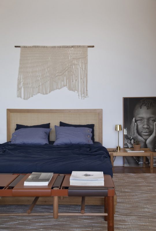 O projeto retrata várias tendências em alta na decoração, como os espaços abertos e integrados, ideais para receber amigos, e mais de 60 vasos de plantas, surfando, portanto, na onda do urban jungle. Outro destaque é o piso cimentado em tom de barro, em total sintonia com a paleta de cores do momento, em tons terrosos. “Optamos por paredes brancas para criar uma base neutra e assim destacar as obras de arte e as peças de mobiliário. A ausência de rodapé ajudou a reforçar a ideia de simplicidade que buscamos passar neste trabalho”, explica Marcella. Na decoração como um todo, os elementos naturais roubam a cena: móveis e objetos de madeira, cabeceira de cama e painéis em freijó vazados e pivotantes com fechamento em palhinha, tapete de fibra de bananeira, vasos de argila natural, roupa de cama e cortinas de puro algodão e estofamentos em couro são alguns exemplos.