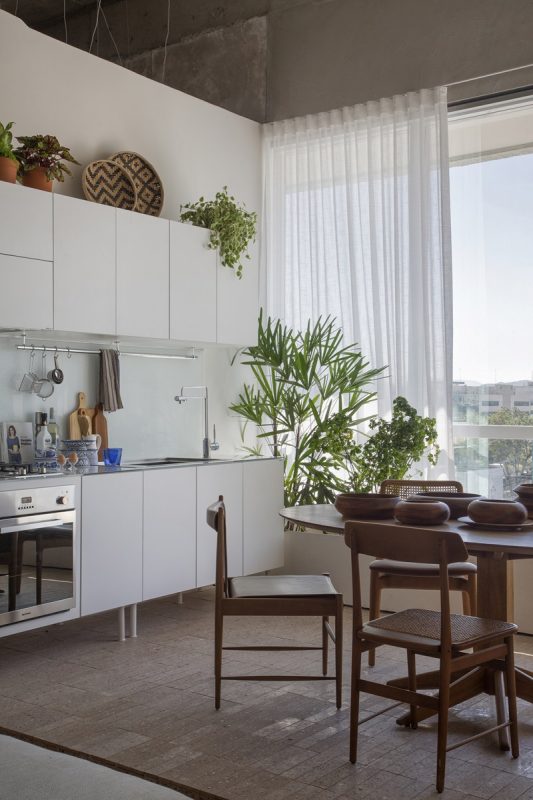 O projeto foi pensado para apartamentos alugados, visando o investimento no mobiliário e não na obra. “São móveis soltos, assinados e atemporais que o morador poderia levar facilmente para um novo endereço, em caso de mudança. Por isso, evitamos não só as alvenarias mas principalmente as soluções de marcenaria sob medida, que se encaixam em um único espaço e por isso acabam sendo deixadas para trás”, justifica Marcella, que garimpou a maioria dos móveis em uma recente liquidação com pronta-entrega, na loja Arquivo Contemporâneo.