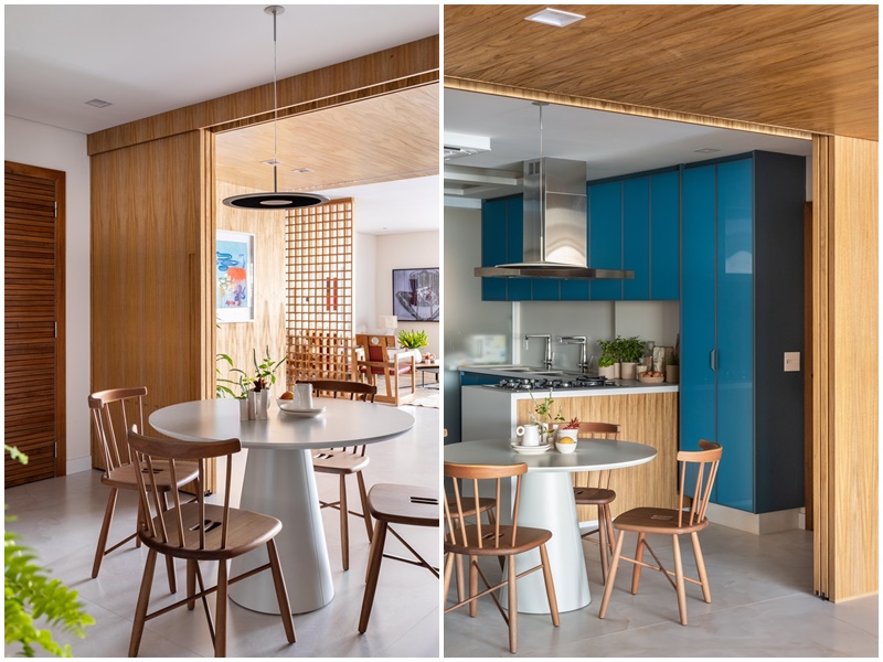 O casal na faixa dos 40 anos (ele, empresário; ela, fonoaudióloga), com um casal de filhos pequenos, comprou este apartamento de 270m2, na Praia de Icaraí (Niterói/RJ), e solicitou um projeto de reforma geral ao arquiteto Henrique Ramalho (@henriqueramalhoarquitetura) para modernizar todos os cômodos, com modificações significativas no layout da planta. “Abrimos a copa-cozinha para a sala, com a possibilidade isolar os espaços por meio de portas de correr, que excutamos em marcenaria. Para ganhar ainda mais amplitude, integramos a sala íntima, que também era isolada, com a área social”, conta Henrique.