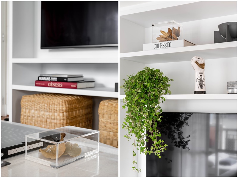 As arquitetas, então, apostaram em uma base neutra com acessórios bem coloridos, como quadros e almofadas.