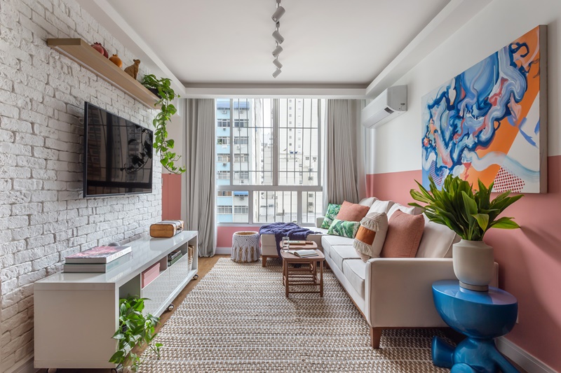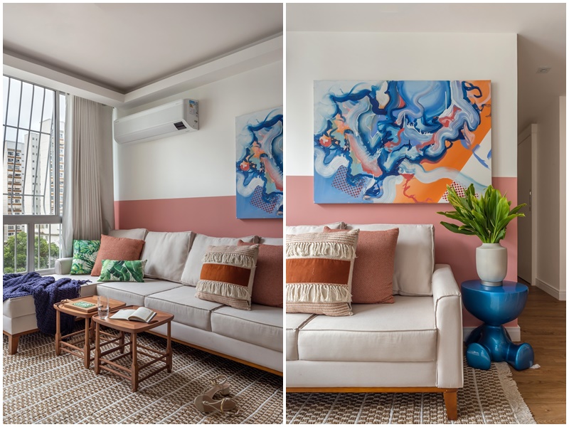 Após comprar este apartamento de 70m2, em Icaraí (Niterói), o casal de mulheres na faixa dos 40 anos, com um filho de seis anos, encomendou à arquiteta Amanda Miranda um projeto de reforma total, com décor feminino, colorido, alegre e, ao mesmo tempo, aconchegante.