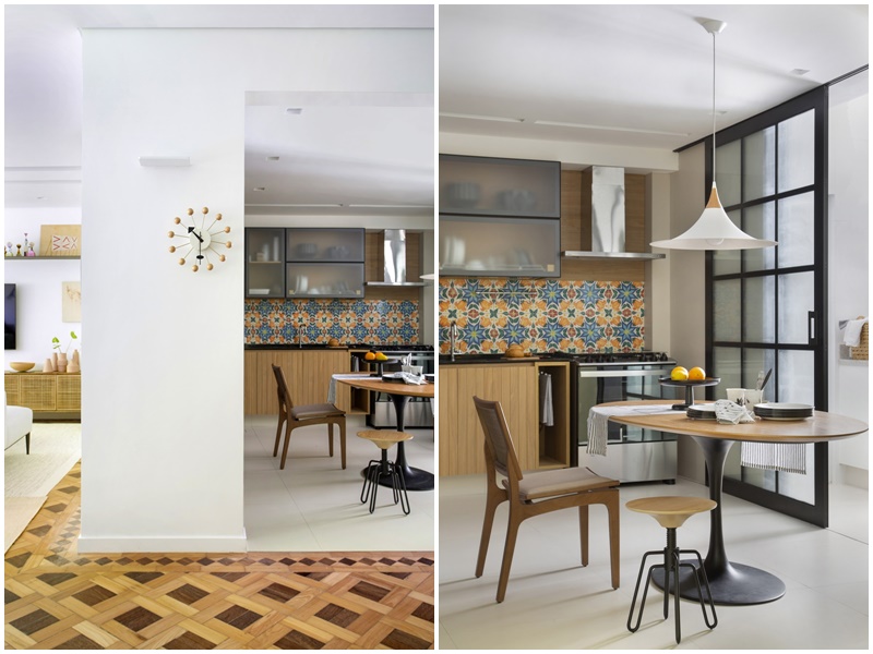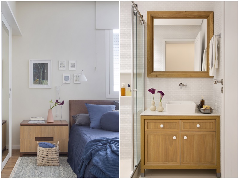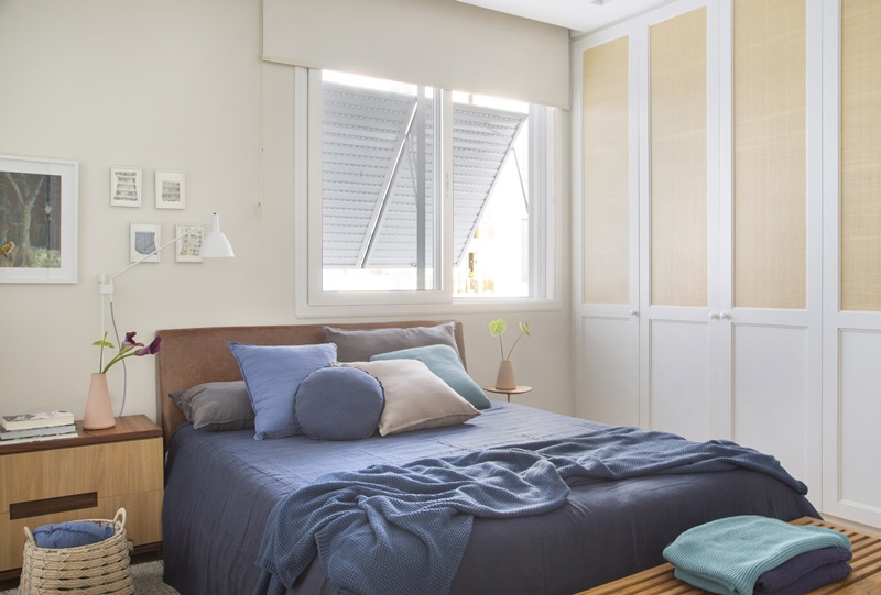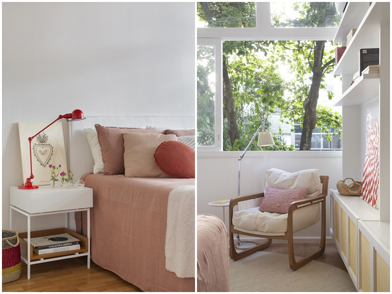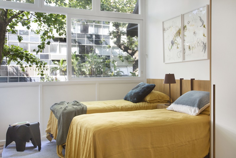 “Adoro a luminosidade natural abundante em todos os cômodos do apartamento e a sacada com guarda-corpo amarelo na sala, em contraste com o verde das copas das árvores que invadem as janelas. Este apartamento é um oásis no coração do Leblon: fica no meio do buchicho do bairro, mas, ao mesmo tempo, é tranquilo e silencioso. Um verdadeiro achado.”, conta a arquiteta Marina Romeiro.