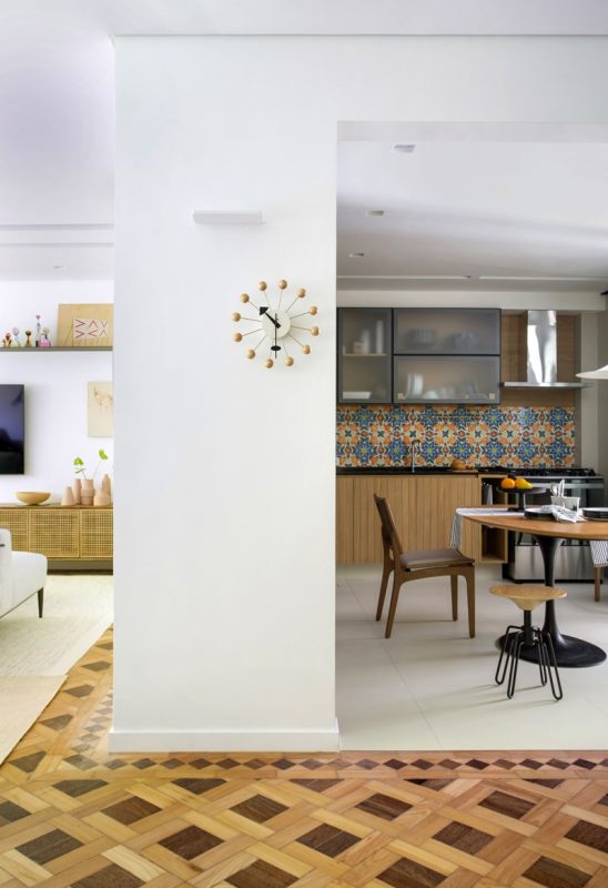 Desde que se separou de sua ex-mulher, o advogado alugava um imóvel no quarteirão seguinte da mesma rua, no final do Leblon. O imóvel atual ficou à venda desde o início de 2020, mas foi a partir da pandemia, com a consequente queda dos preços, que finalmente surgiu a oportunidade de compra. A arquiteta já havia projetado o apartamento onde o irmão morava com a ex-esposa. “O ponto positivo de ser irmã do João é que ele tem bom gosto e topou investir em algumas peças de design assinado para valorizar a casa. Um ponto negativo é que todo encontro familiar acabava virando reunião de trabalho. No fim valeu a pena. Ele é super tranquilo e acatou a maioria das minhas sugestões”, conta a arquiteta.