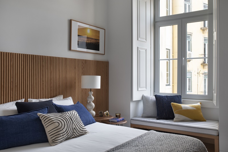 Quando o empresário brasileiro Tomaz Negrão morava no Rio de Janeiro, a arquiteta Cristina Bezamat, do escritório @bezamatarquitetura, foi contratada para fazer seu apartamento. Assim que o projeto foi finalizado, ele decidiu se mudar para Lisboa para investir no ramo imobiliário português. Quando encontrou este imóvel de 150m2, em um prédio que estava sendo “retrofitado” (com uma vista linda para a praça, ao lado do Mercado da Ribeira, onde funciona o famoso food hall Time Out Market Lisboa), Tomaz logo solicitou ao escritório um novo projeto, desta vez para personalizar a planta desenhada pela construtora e decorar todos os espaços, incluindo o quarto da filha, de seis anos. “O cliente pediu para trazer a cozinha para dentro do living e melhorar a divisão dos espaços, de um modo geral“, conta Cristina.
