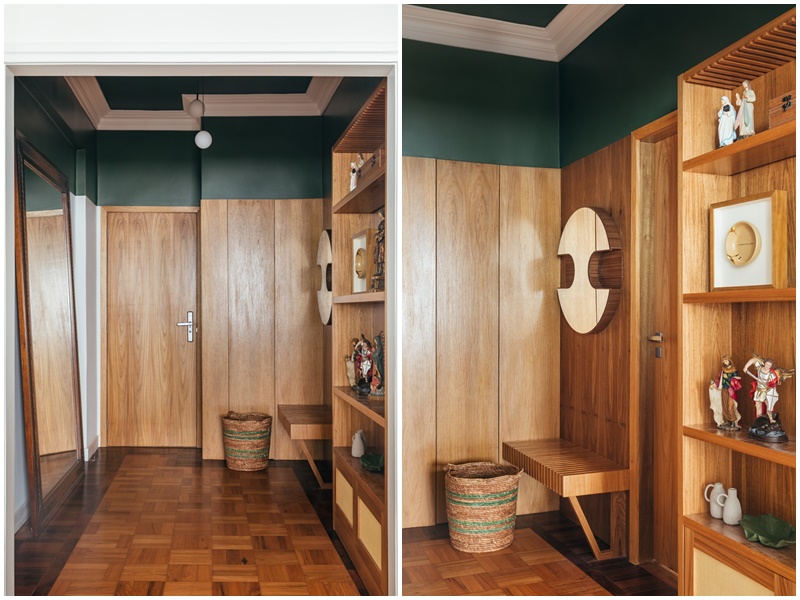 – Na entrada do apartamento, criamos uma espécie de “hall de orações”. A família, super religiosa, queria expor os objetos, esculturas e imagens sacras de modo a criar um ambiente para orações e também de bênçãos para quem entra e sai – conta Fernanda.