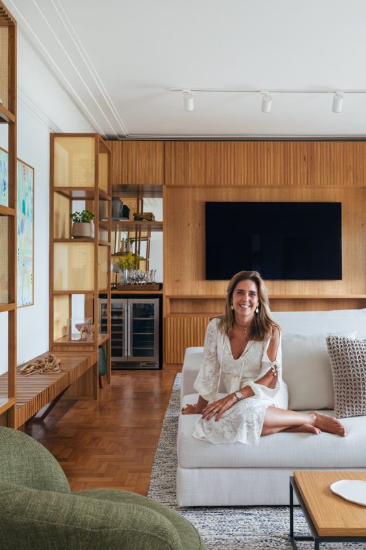 A arquiteta Fernanda Medeiros no apartamento na Av. Atlântica