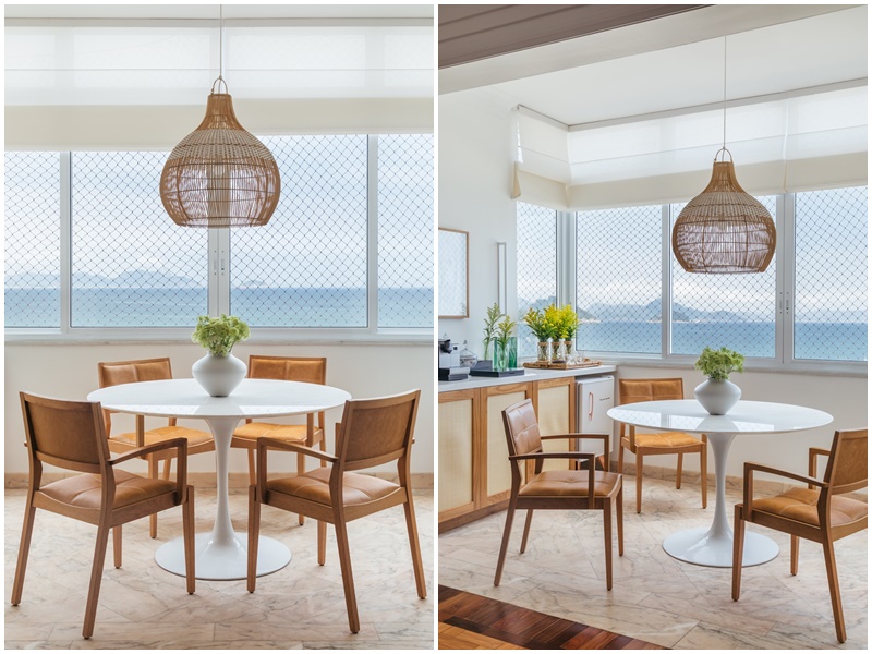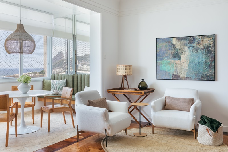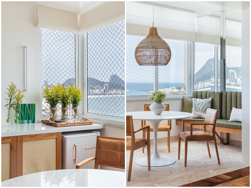 De frente para a praia de Copacabana, projeto aposta em mix de materiais leves e no equilíbrio de peças clássicas e contemporâneas