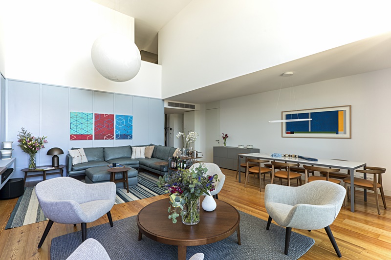 A família brasileira formada por um casal e dois filhos adolescentes ganhou um apartamento sob medida para suas férias em Portugal. Localizado em Cascais, num prédio recém-construído pertinho da praia, o imóvel compacto ganhou soluções inteligentes e decoração contemporânea e aconchegante pelas mãos da arquiteta Andrea Chicharo.
