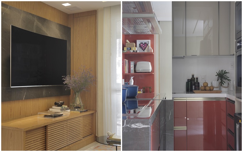 - Material e fornecedor do painel da TV: Mármore Armani, Rubini Marmoraria