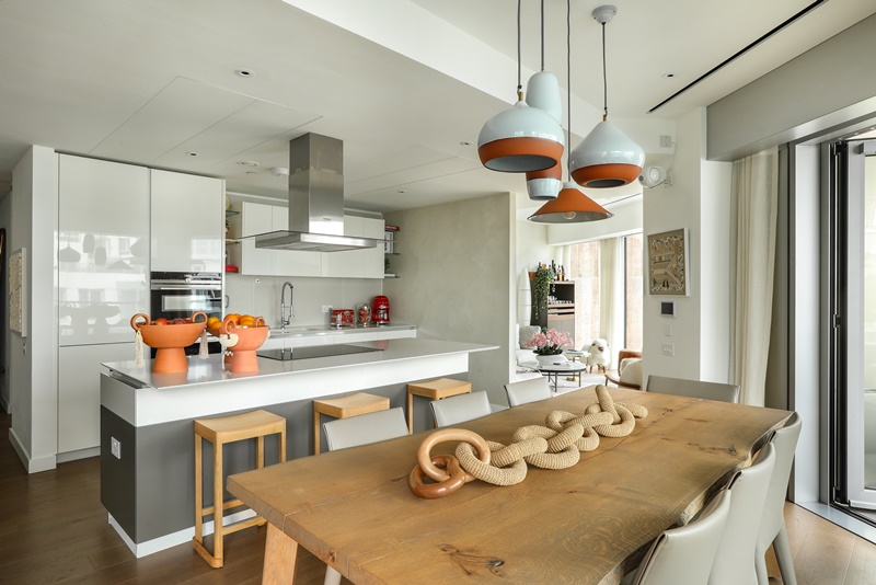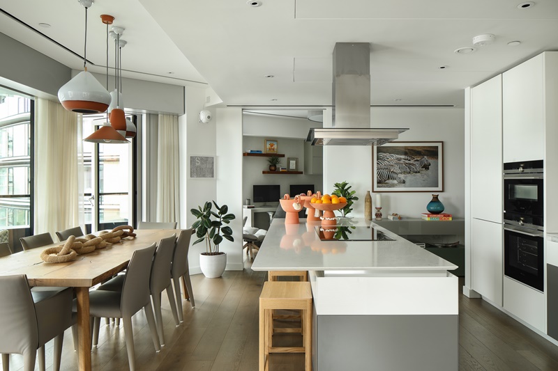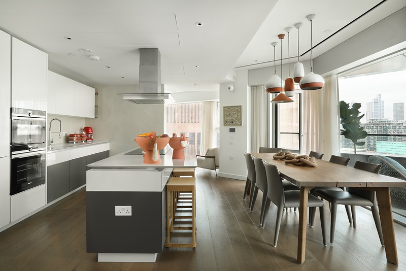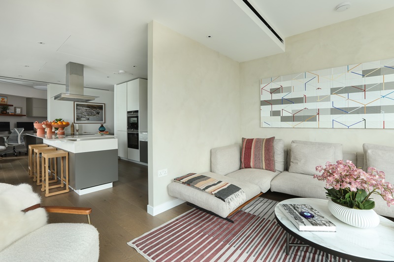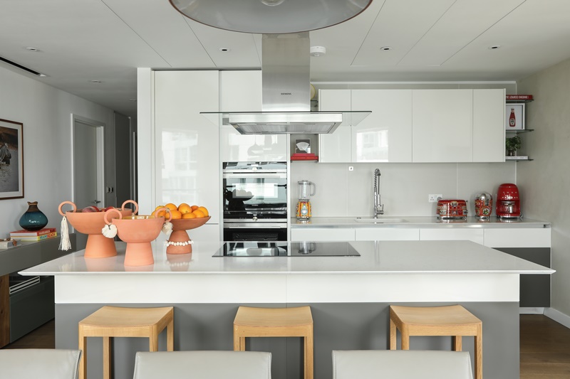 Para a família que começa a se formar, uma casa totalmente nova. E a escolha desse casal que mora em Londres foi viver num bairro também jovem: Battersea. Ali, no entorno da antiga power station da cidade – um prédio icônico agora reformado e transformado em shopping depois de estar desativado por mais de 50 anos -, surgiram edifícios modernos e um deles pareceu a escolha perfeita para receber os recém-casados.