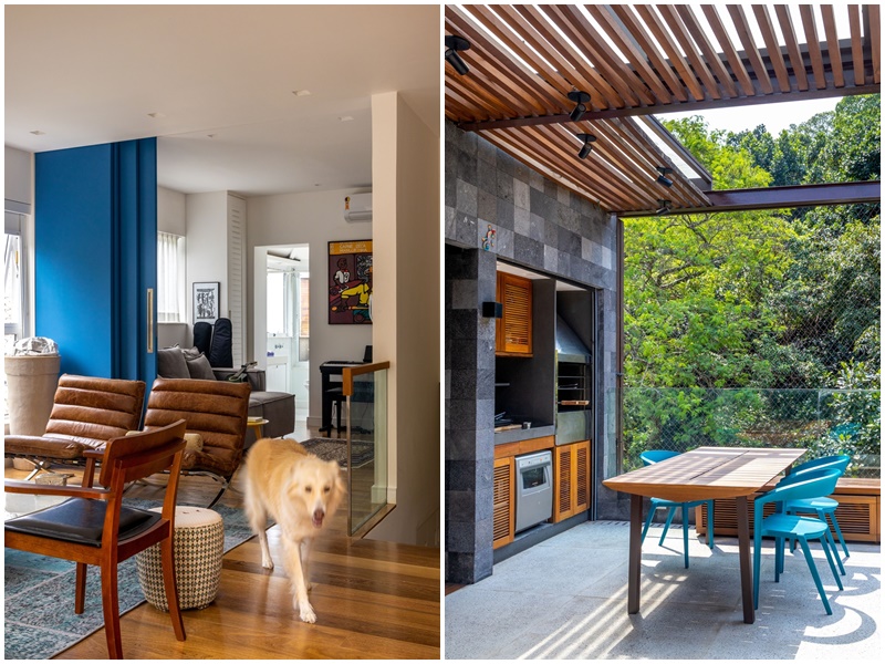 - O projeto da arquiteta contemplou os seguintes cômodos: No primeiro andar, sala, quarto da filha de 13 anos e quarto do casal; no segundo andar: sala, quarto, banheiro e área externa. “Também fizemos pequenas interferências no quarto das duas filhas, na copa-cozinha e no hall social do elevador“, revela Ketlein.