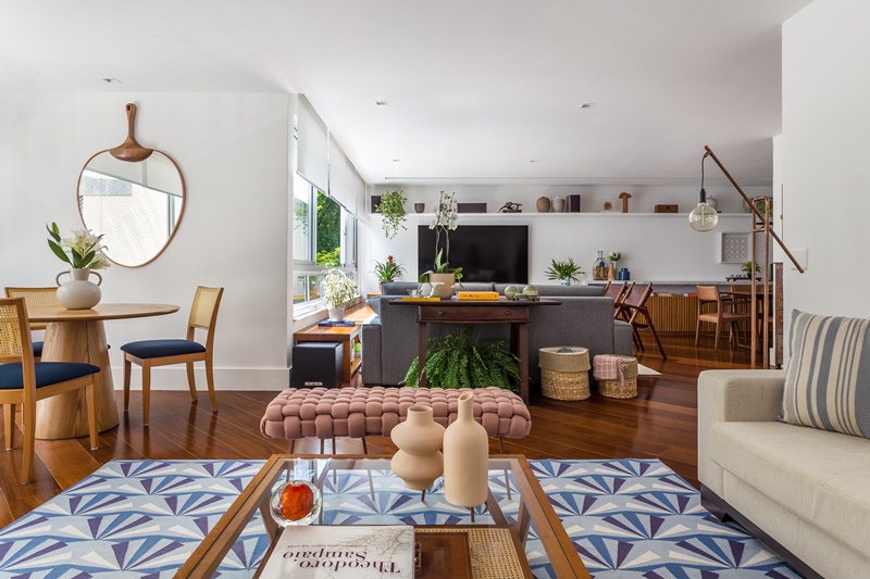 - Estilo da decoração da área social como um todo: Contemporâneo afetivo.