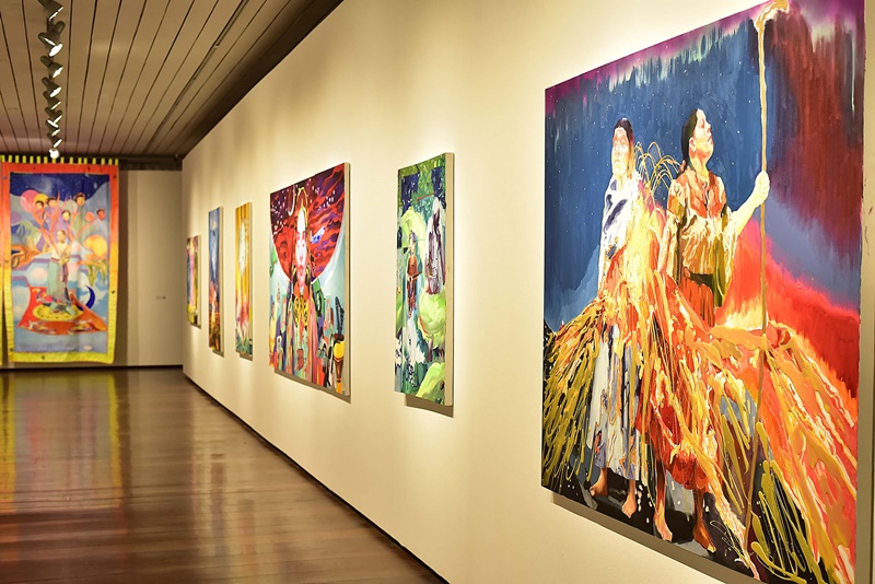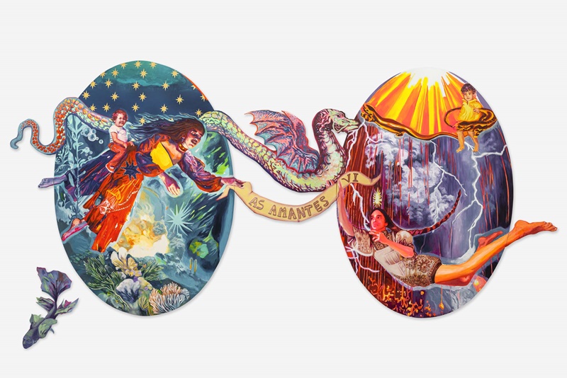 O nome da exposição, “Transmutação: alquimia e resistência”, é repleto de significados, assim como as obras. “Sua produção, imbuída de simbolismo e intencionalidade, remete à prática da alquimia não apenas pela transformação de materiais — que se estende além dos tradicionais pigmentos, pincéis e telas para incluir madeira e cerâmica — mas também em sua busca constante por saberes e narrativas circunscritas à margem da retórica hegemônica, na exploração do potencial humano e na revelação de outras histórias. Tais trabalhos mergulham profundamente na realidade latino-americana, discutindo e salientando questões sociais e políticas”, afirmam os curadores.