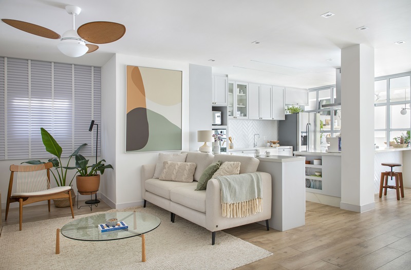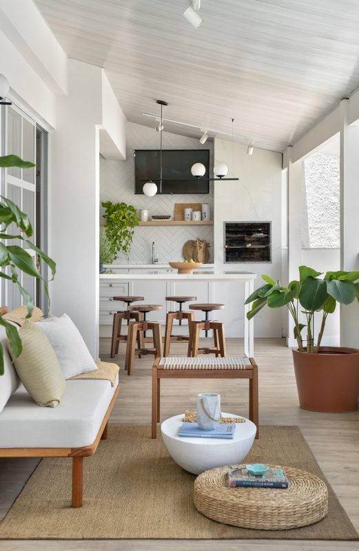 Casal de médicos, na faixa dos 30 anos, compra cobertura duplex de 210m2, em Icaraí (Niterói/RJ), e encomenda à arquiteta Amanda Miranda um projeto de reforma do primeiro pavimento, com décor predominantemente branco, e toques dos estilos clássico e boho.