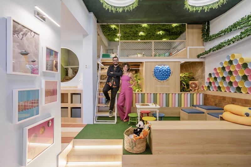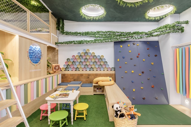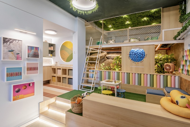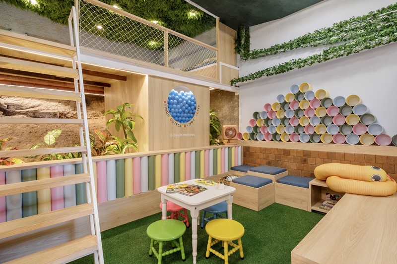 Em 48m², o escritório Bivolt Interiores, comandado pelos designers Lorena Lopes e Marcus Trajano, criou a ‘Brinquedoteca Ao Vivo e A Cores’, espaço que faz parte da mostra Morar Mais, no Rio de Janeiro.