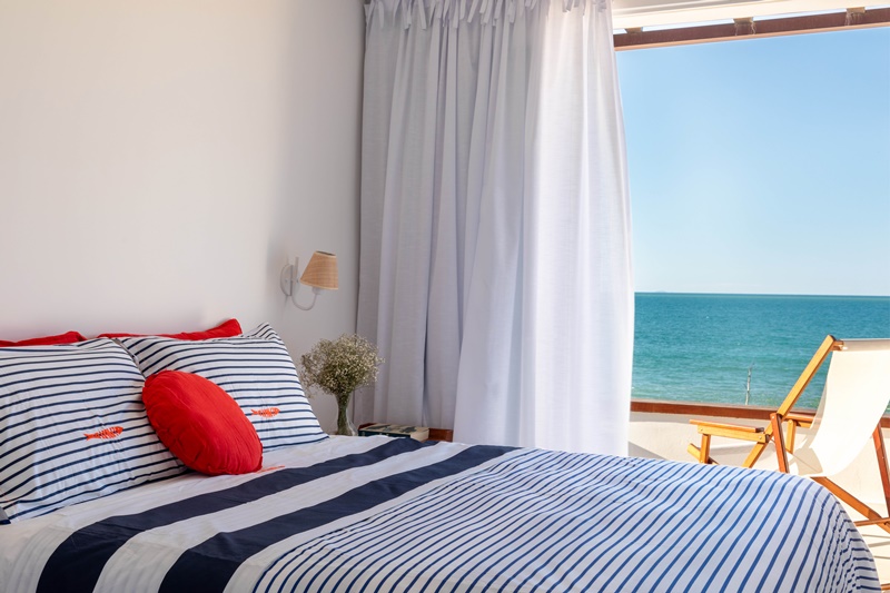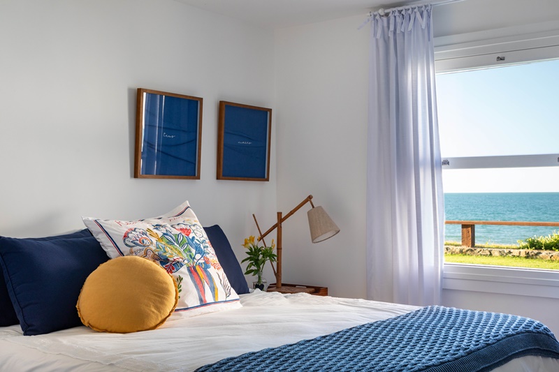 A reforma trouxe várias alterações na planta original. No piso térreo, por exemplo, a integração das salas de estar, jantar e parte do pátio externo permitiu ampliar consideravelmente a área social. No mesmo pavimento, o espaço de uma das suítes virou a cozinha atual, que passou a ser integrada à nova área gourmet, com 24m2, de frente de frente para o mar. As arquitetas também criaram uma nova suíte, transformando o espaço embaixo da escada em banheiro e um antigo depósito em dormitório. “Também subimos a altura do telhado, tomando cuidado para não modificar a fachada original. Antigamente, as casas de Búzios tinham o pé-direito muito baixo“, diz Cecília.