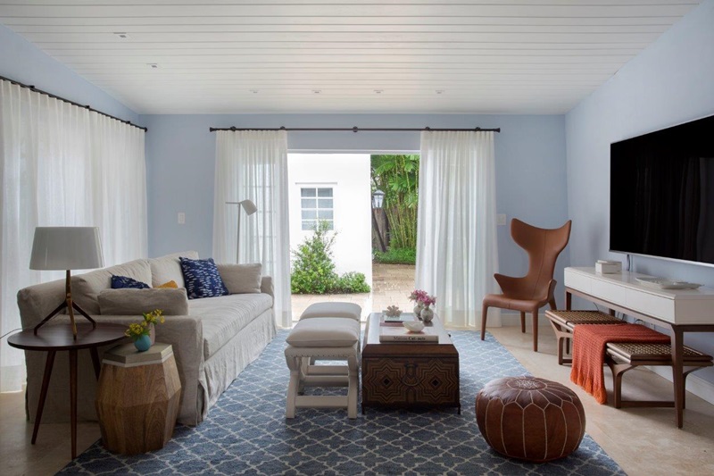 A atmosfera que convida ao descanso e à contemplação está também nos espaços internos, que apresentam elementos ora com tons suaves, ora com estampas florais, além da presença de peças de madeira e luminárias instigantes.