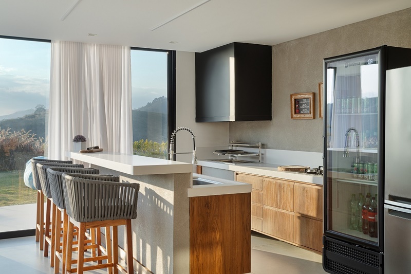 “Fomos chamados para construir do zero; o projeto em si levou cerca de dois meses e a obra, da fundação à finalização da decoração, levou 1 ano e 5 meses”, conta o arquiteto.