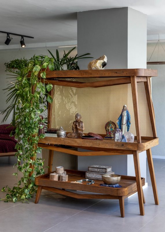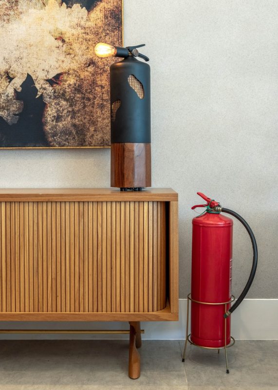 Uma porta de garagem virou biombo; uma adega, biblioteca; um extintor de incêndio, luminária; mesas de chá e aparador empilhados, oratório; escultura de parede, base para mesa de centro, espuma de colchão, poltrona … E por aí vai!
