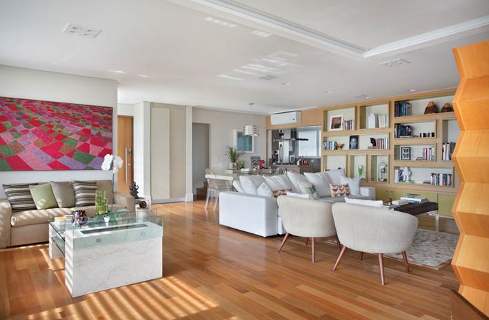 Foram cinco meses de trabalho para redesenhar a planta original do imóvel de forma a garantir a máxima integração dos espaços.