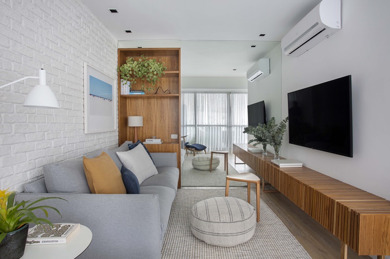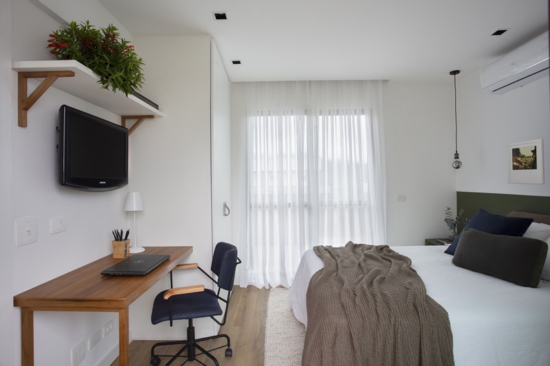 A família, que morava em um apartamento no mesmo edifício, um andar abaixo, aproveitou a oportunidade em plena pandemia para investir em um imóvel mais amplo e confortável, com direito a área de lazer na cobertura. “Eles queriam um espaço de lazer superconfortável e agradável para receber parentes e amigos. Além disso, precisavam de uma área de estudos ou home office em todos os quartos. Devido à pandemia, as filhas passaram a estudar em casa e o casal a trabalhar remotamente na maior parte do tempo”, explica a arquiteta Ana Luisa Cairo.