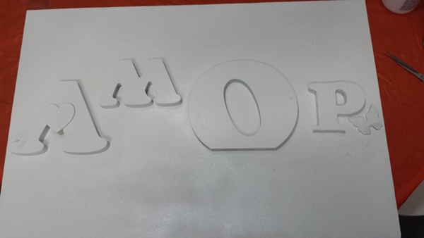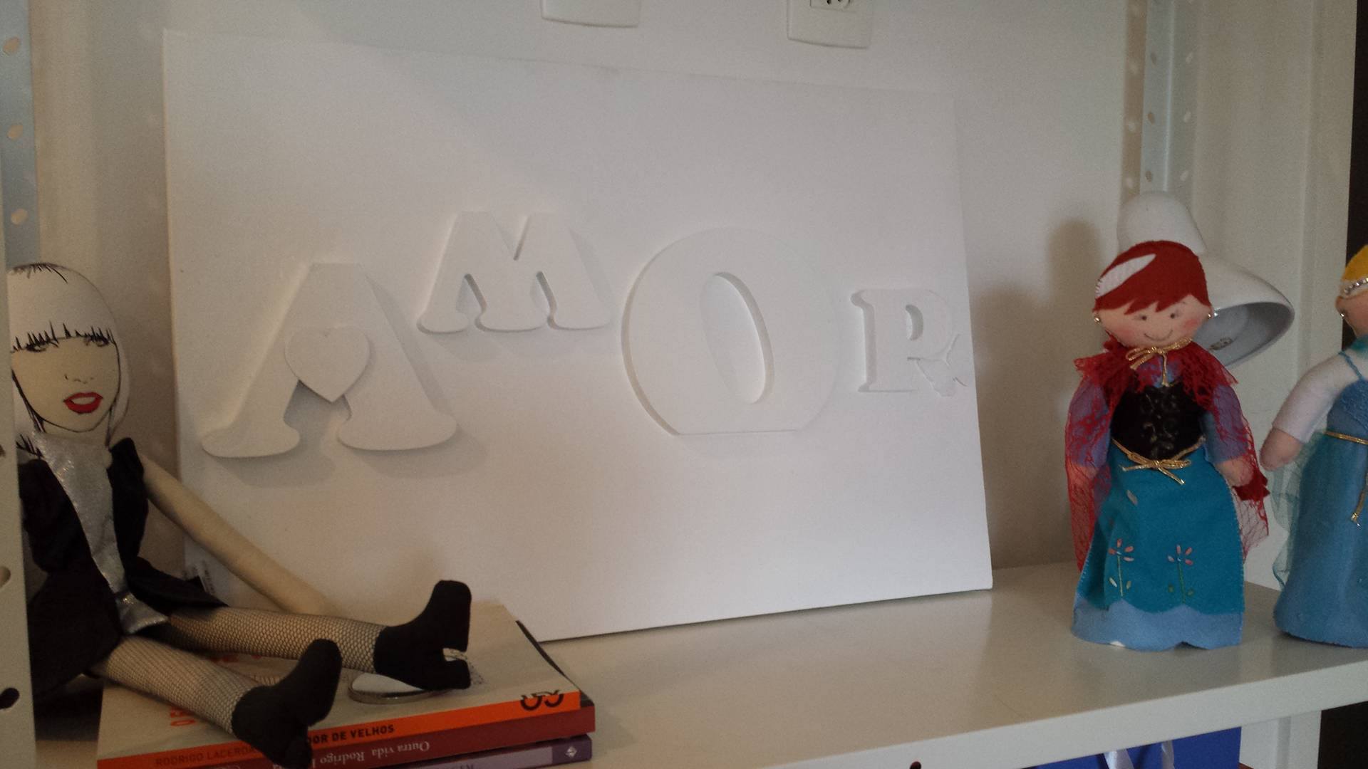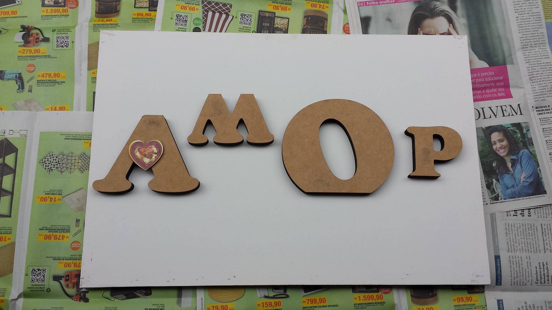 Por exemplo, não tinha a letra “A”. Então usei o “V” de cabeça para baixo. Em “amor” colei um coração para que ficasse mais definido.