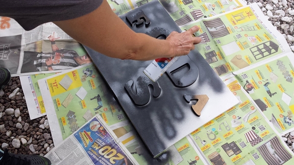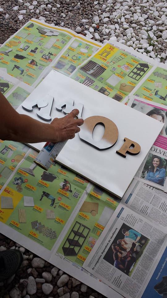 Agora, a pintura. Eu adoro tinta spray, mas pode ser feito com pincel e rolinho também.