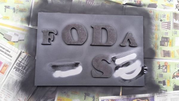 Com o “R” foi a mesma coisa. Usei então o “P” e colei uma borboleta para fazer a perninha do “R”. Com a expressão “FODA-SE” não tinha a letra “E”, também. Deixei então assim, meio “capenga” e pixei a letra “E”. Você vai ver como ficou seguindo o passo a passo.