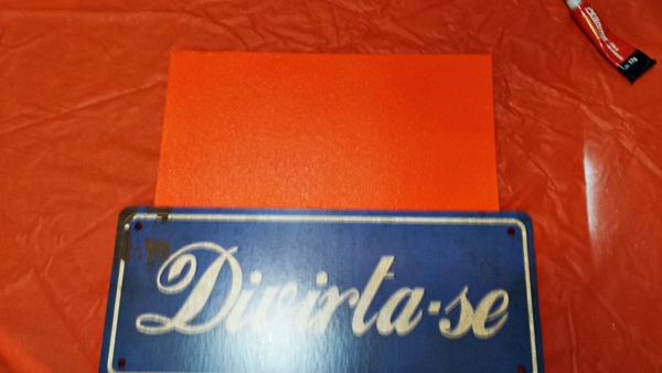 Pinte a tela inteira com tinta spray laranja. Você pode também utilizar tinta acrílica para artesanato e um rolinho, se achar mais prático.