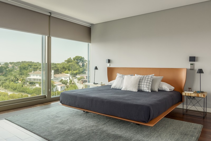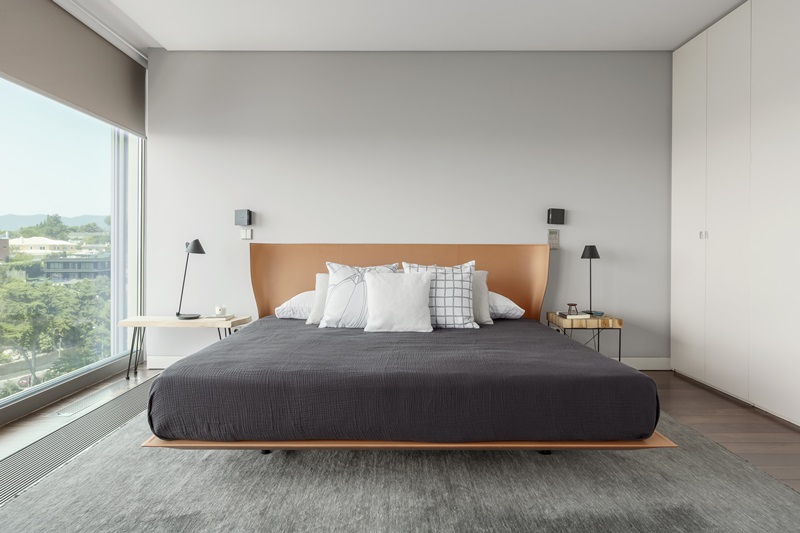 Com vista para uma extensa área verde, a cozinha, de 20,4m², ganhou uma bancada de refeições desenhada pelas arquitetas. O quarto do casal, de 26,4m², segue o mesmo estilo do restante da casa, com cama da B&B Italia, mesa lateral Zara Home e abajures da Lumini. Já o quarto do filho, com 16,4m², ganhou cama sob medida, roupa de cama e mesa lateral Zara Home e luminárias da João Lopes Iluminação.