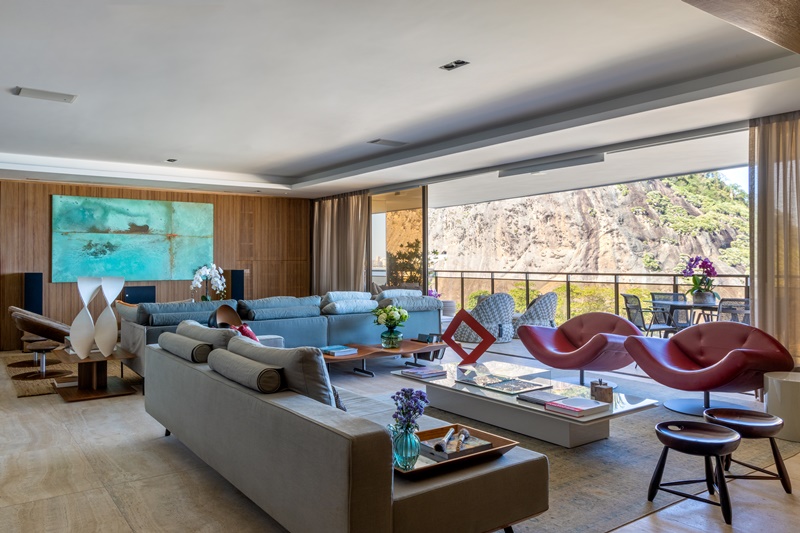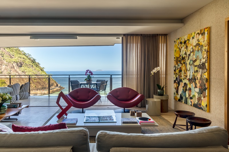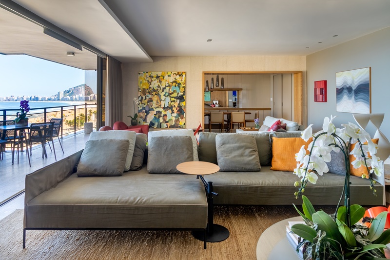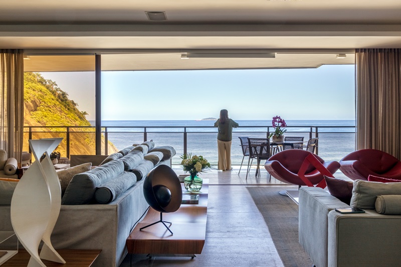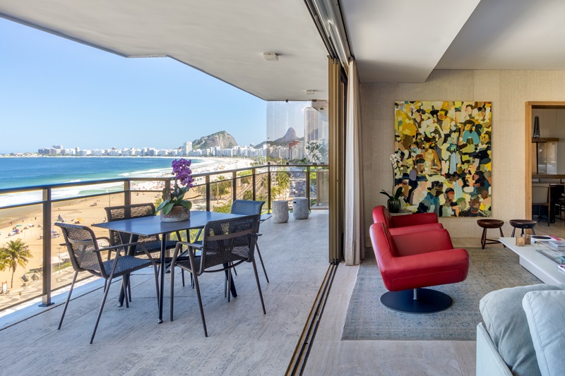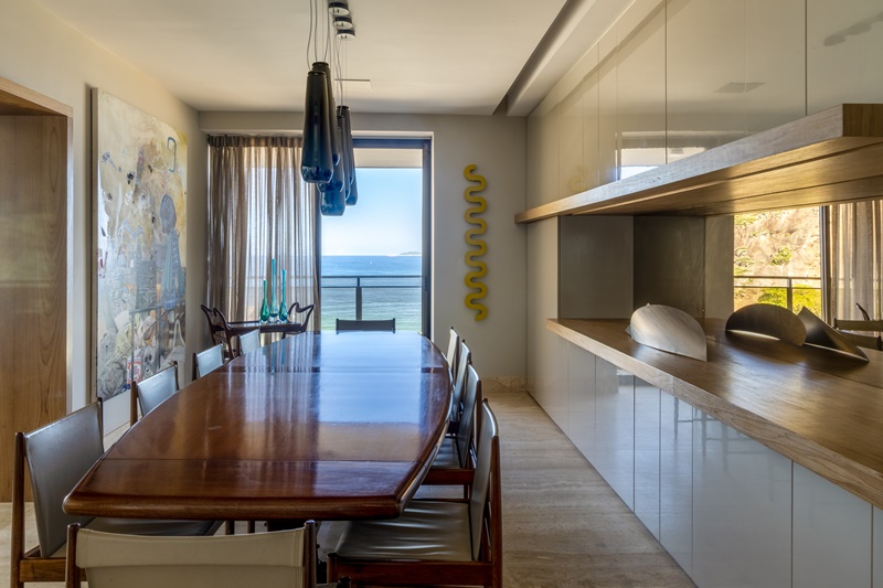 A ARQUITETA ANDREA CHICHARO MUDOU INTEIRAMENTE O LAYOUT DESTE APARTAMENTO DE 294 M2 E TEM COMO ALIADA A PAISAGEM DESLUMBRANTE DE COPACABANA QUE SE DESCORTINA ATÉ A PONTA DO ARPOADOR