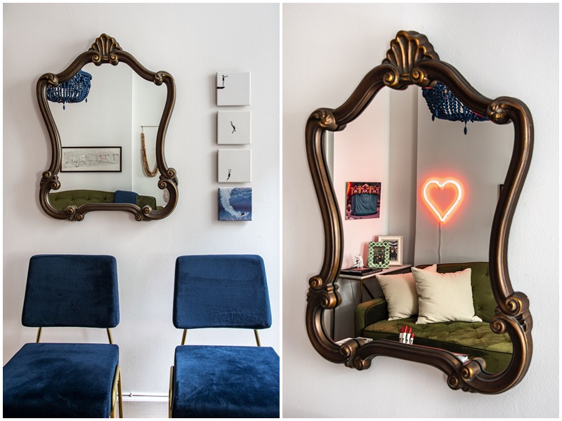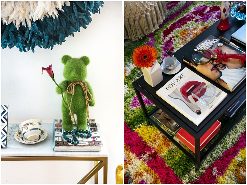 Primeiro, porque casas verdadeiramente coloridas e vibrantes são cada vez mais raras de se encontrar e, quando bem pensadas, não só nos inspiram como também nos instigam a questionar padrões de décor que refletem as tendências de mercado da vez. Segundo, porque não seguir “a manada” exige capacidade de abstração, olhar artístico, gosto por garimpo e habilidade para juntar, mesmo num pequeno espaço, cores que parecem não combinar. Nas mãos de Guta, o resultado sempre surpreende positivamente. Não à toa, ela batizou esse projeto de Tropicália. “O uso de cores vibrantes em profusão se tornou uma marca registrada nos meus trabalhos e neste apê não poderia ter sido diferente. Queria que o humor estivesse presente nos detalhes da decoração e que meu lar fosse uma distração para meus convidados, que eles se se interessassem e fotografassem, dessem risada ou se identificassem com algo ali presente”, conta Guta, que apostou em tecidos macios, quentes e confortáveis, como o veludo, já que em Nova Iorque faz mais frio do que calor ao longo do ano.