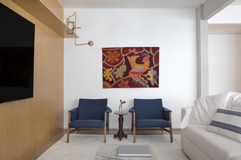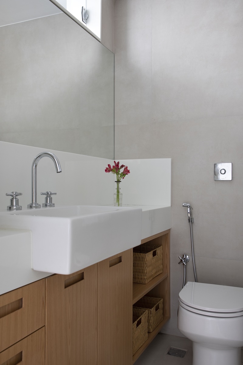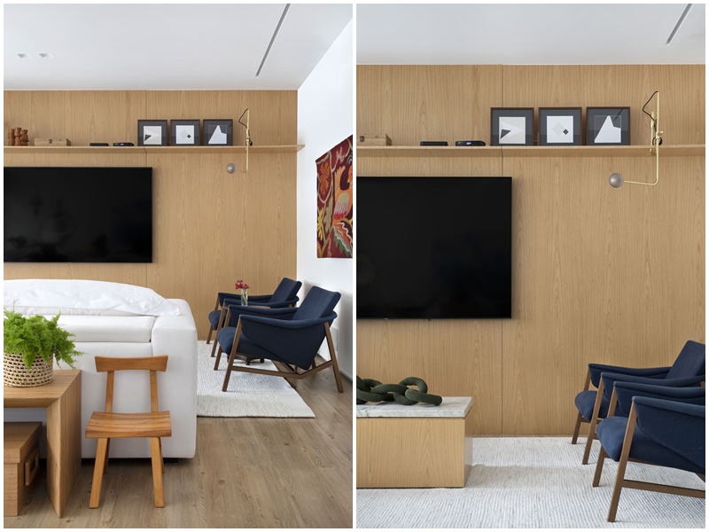 Nosso maior desafio neste projeto foi reaproveitar os móveis antigos que vieram do apartamento anterior de uma forma que não ficasse pesado e que ainda conversasse com móveis atuais, de design assinado“, finaliza a arquiteta Marina.