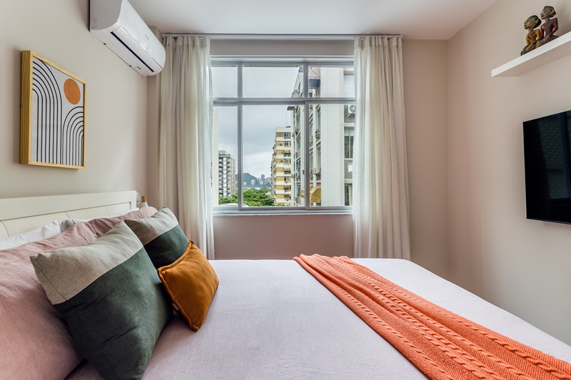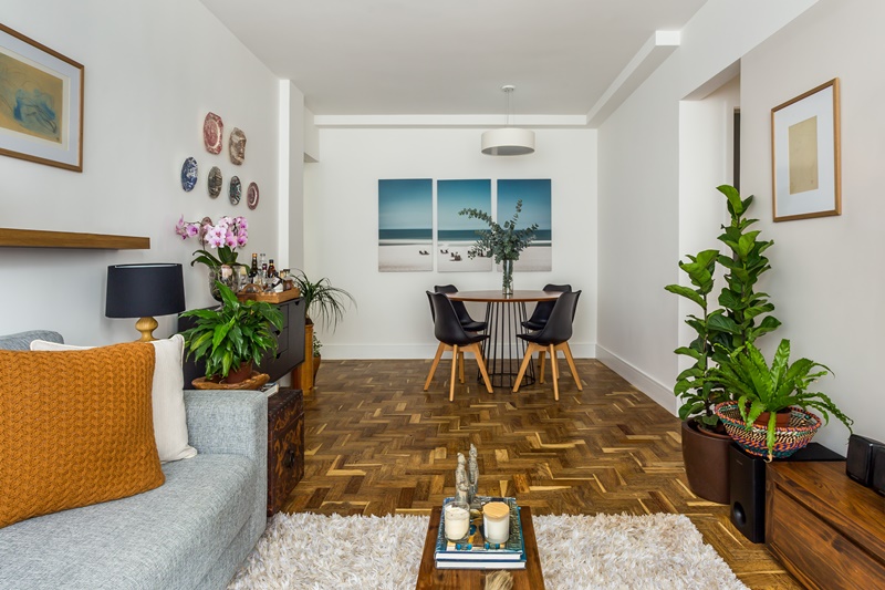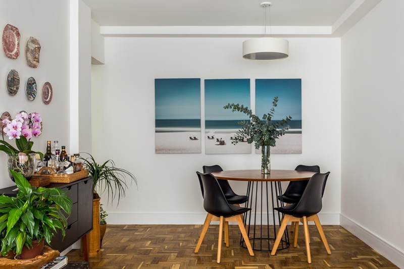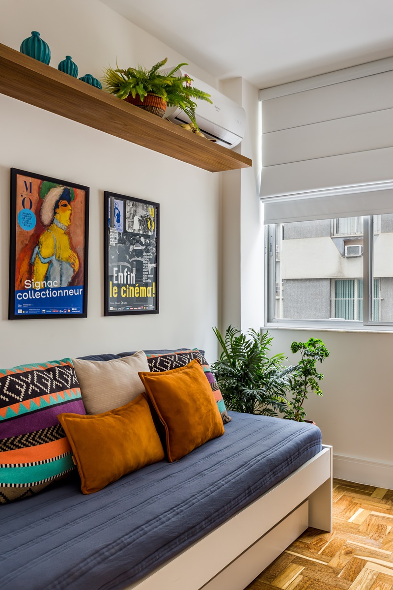 Para trazer sua mãe para morar mais perto dele, o filho de uma senhora na faixa dos 70 anos, comprou este apartamento de 85m2, no Leblon (zona sul do Rio de Janeiro). Encomendou, então, um projeto de reforma total às arquitetas Juliana Gonçalves e Fernanda Matoso, do escritório Co+Lab Juntos Arquitetura (@colab_juntos_), que renovaram todos os cômodos. “Ele queria um apartamento confortável para a mãe morar, que fosse atemporal e neutro, pois ela levaria junto uma parte do acervo do endereço anterior. Ele também pediu um quarto de hóspedes com bicama para acomodar os netos que a visitam com frequência, além de bastante espaço de armazenamento, que foi solucionado transformando um dos quartos em closet“, explica Fernanda.