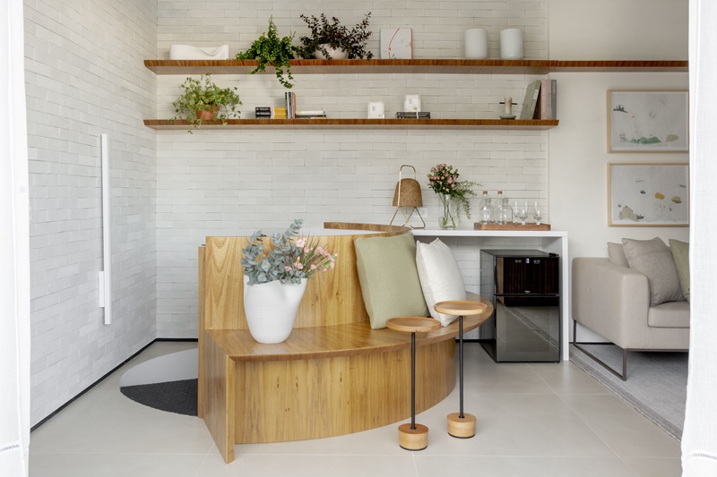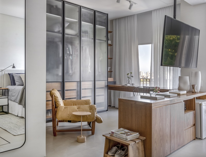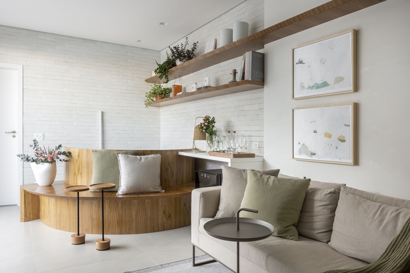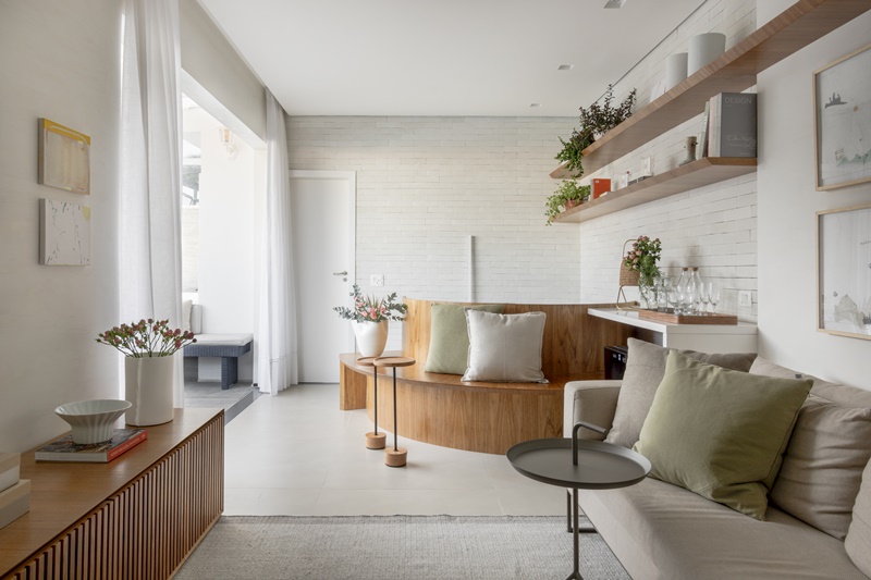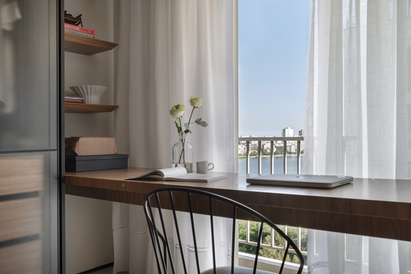 No projeto, Marina Romeiro destaca ainda a copa em canto alemão, com gavetões sob o assento, que permitiu um melhor aproveitamento do espaço e deixou a circulação mais fluida; a bancada suspensa de frente para a janela do quarto do casal, que agora permite que os clientes trabalhem enquanto apreciam a vista da Lagoa Rodrigo de Freitas; o revestimento de tijolinho na parede da sala de refeições do primeiro andar e na sala da TV do segundo piso, que deu uma ideia de unidade e continuidade dos espaços.