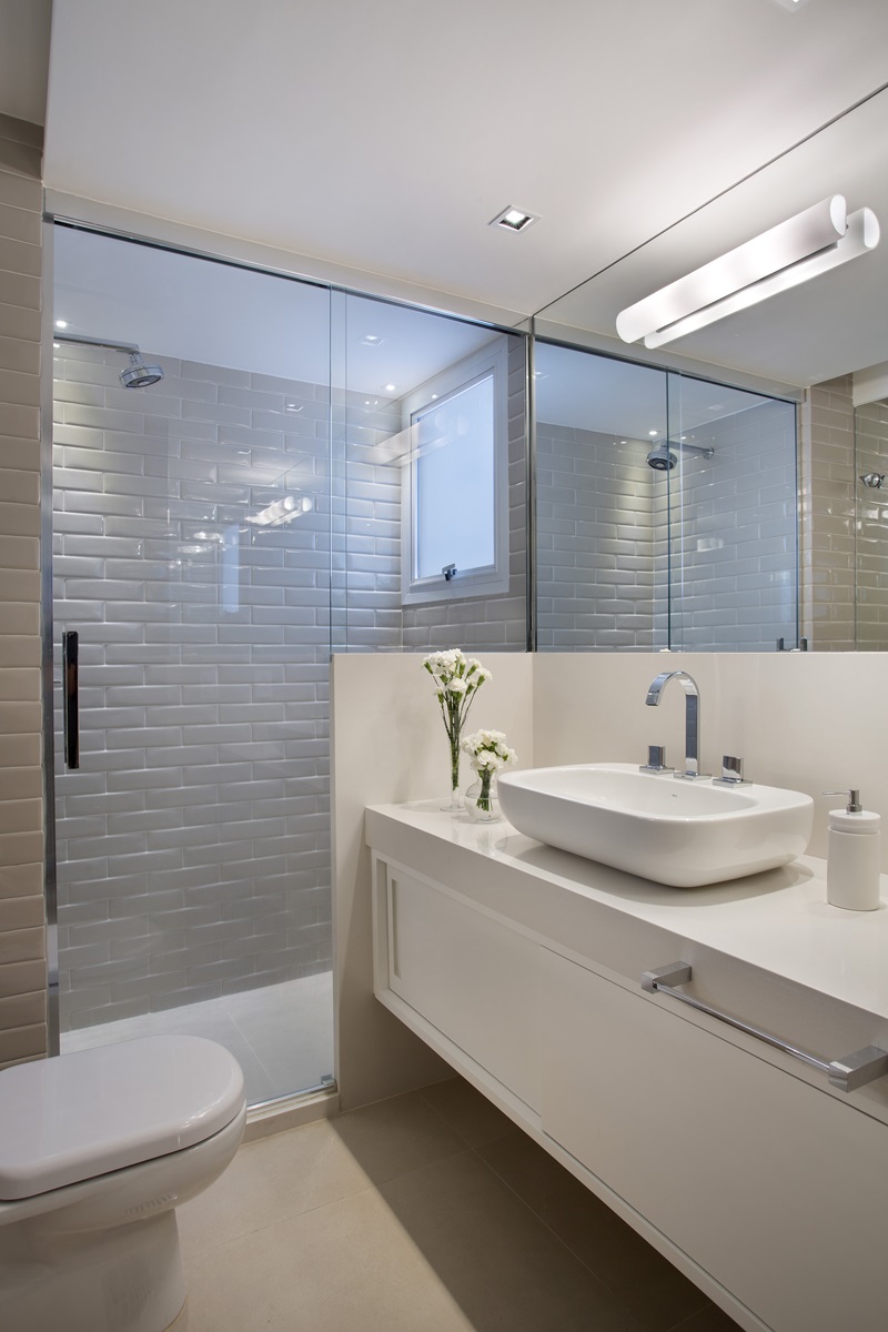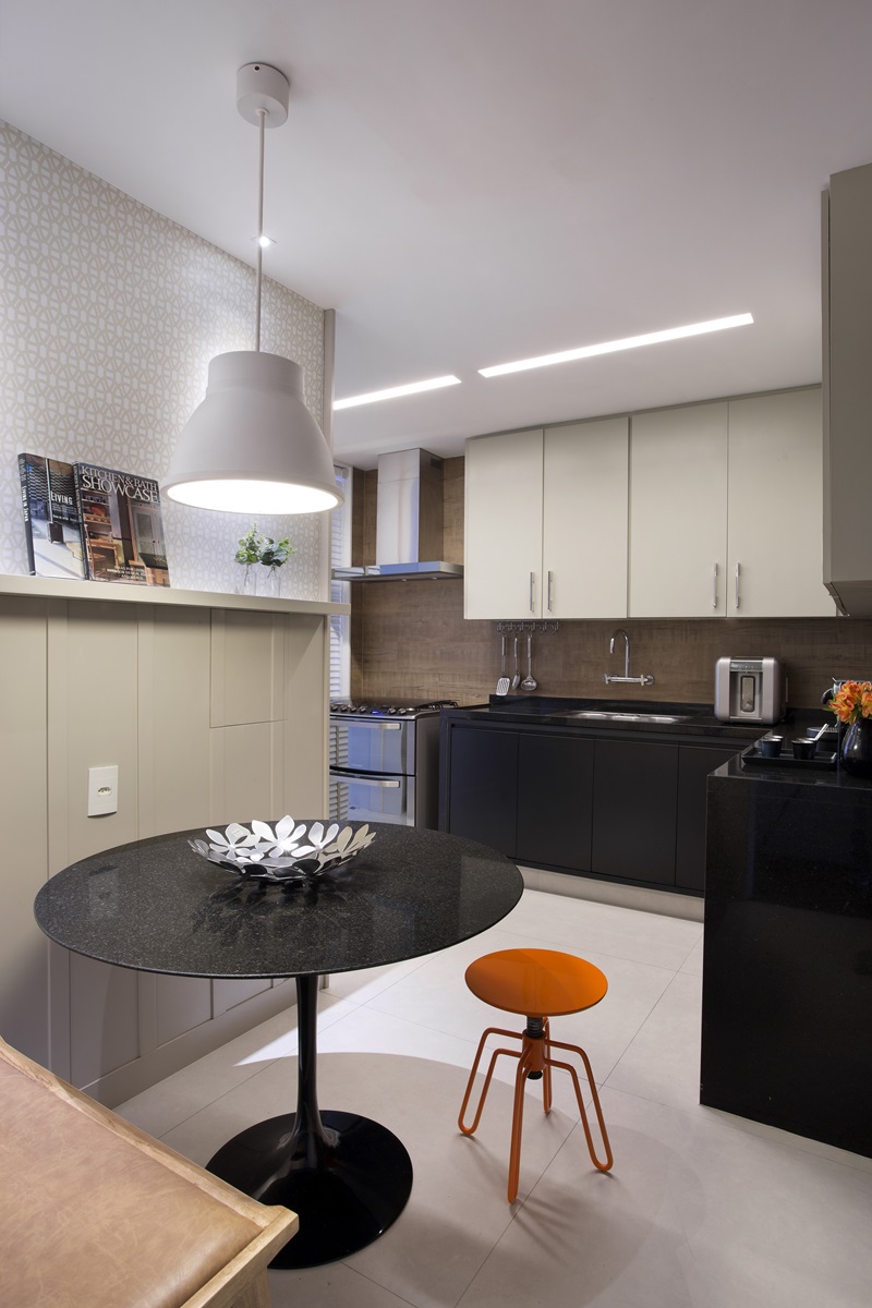 ” Quando entrei no apartamento pela primeira vez, fiquei encantada com atmosfera “de casa”! As copas das árvores da rua formam um jardim sem tirar a luminosidade e a visão do céu. Nossa proposta foi criar uma atmosfera que valorizasse essa integração e seu colorido!” diz a arquiteta Adriana Esteves.  E o que era para ser apenas “um toque” na decoração, acabou se transformando em uma reforma maior! Surgiu um banheiro charmoso para a filhinha, uma cozinha elegante com copa, cheia de charme e móveis assinados, e o banheiro da suíte nos mesmos tons do quarto, gerando mais fluidez entre os ambientes.