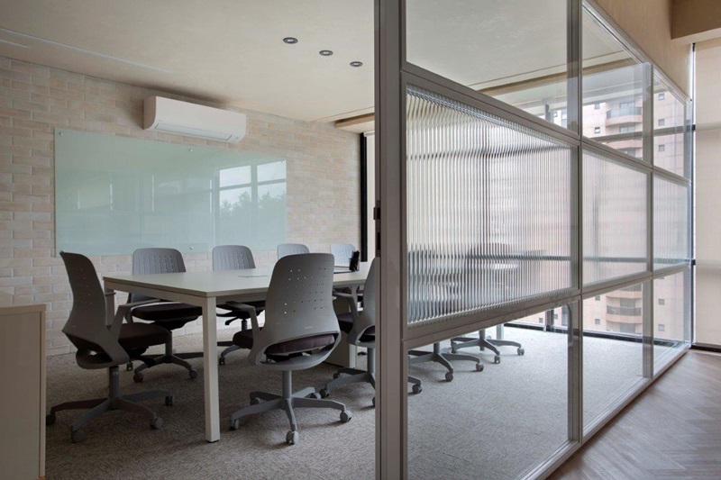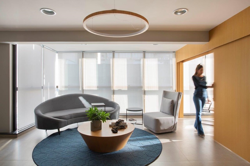 Com 240 m2, o novo escritório da All Investimentos, por exemplo, foi instalado em um prédio com esquadrias na fachada que já contavam com mecanismos de abertura, mas nunca eram usados porque o ar condicionado central ficava ligado o tempo todo. “Como a falta de uso emperrou esses mecanismos, tivemos que readequar as esquadrias para que voltassem a abrir e assim garantir a troca permanente de ar com o exterior”, explica Philippe. “Outra adaptação que fizemos diz respeito às portas, que antes eram painéis fechados. Com a pandemia, trocamos tudo por painéis de correr”, acrescenta ele.