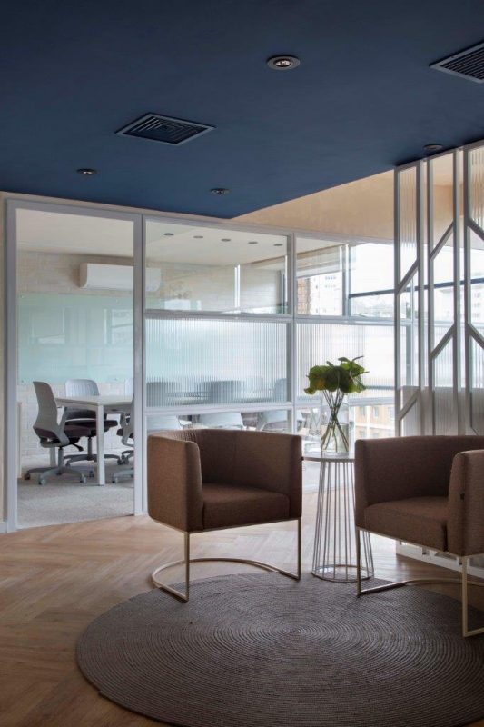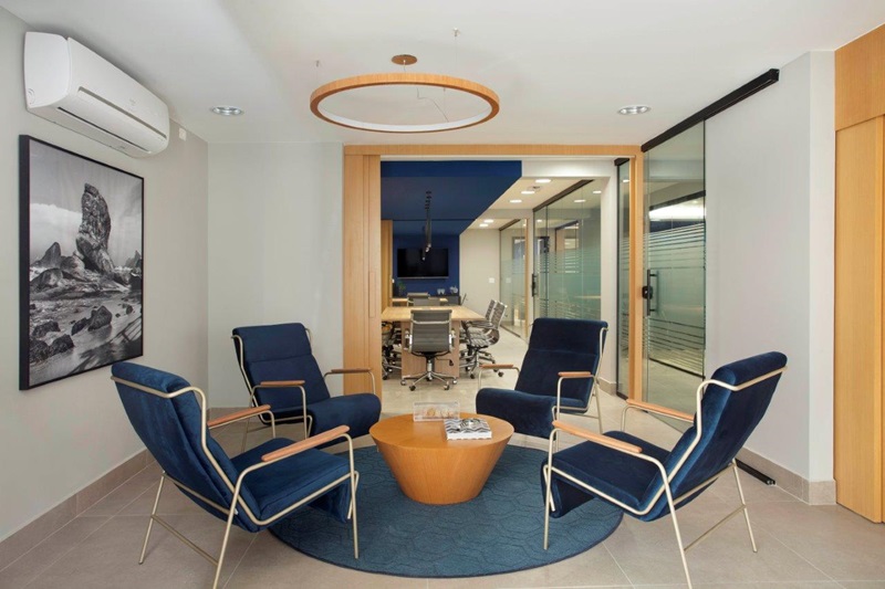 Fora as adaptações impostas pela pandemia, os dois projetos também tem em comum um toque de informalidade e despojamento na decoração, seja pelo uso de cores, marcenaria ou seleção de parte do mobiliário, com direito a peças que lembram ambientes de casa, especialmente nos lounges. “Acho que conseguimos quebrar a sisudez típica das empresas que atuam nessas áreas, em especial no setor de finanças, e, ao mesmo tempo, inspirar seriedade e senso de organização tanto nos colaboradores como nos clientes finais”, conclui Livia.