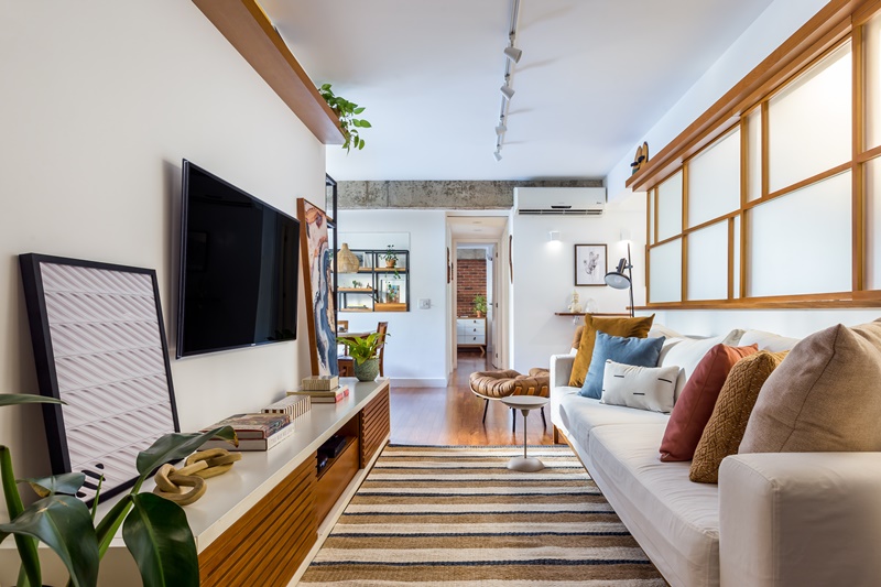 Chamaram, então, o escritório Co+Lab Juntos para imprimir mais aconchego, conforto e vida no apartamento. Algumas peças do acervo dos moradores foram aproveitadas no novo projeto, com a mesa de jantar, o sofá (que foi reestofado) e as camas.