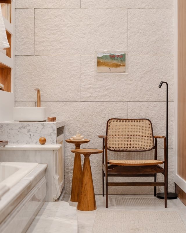 Conexão e suavidade são palavras que expressam o trabalho do arquiteto Rafael Mirza para a CASACOR Rio 2023. Em sua segunda participação na mostra, Rafael é o responsável por dar vida ao “Hall dos Quartos e Rouparia”. Pedras e madeira dão o tom do projeto que agrega funcionalidade e elegância de forma uníssona.