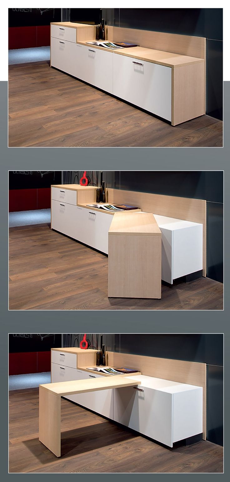 Essa solução esconde a ilha, que pode ser embutida ou exposta, de acordo com a necessidade.