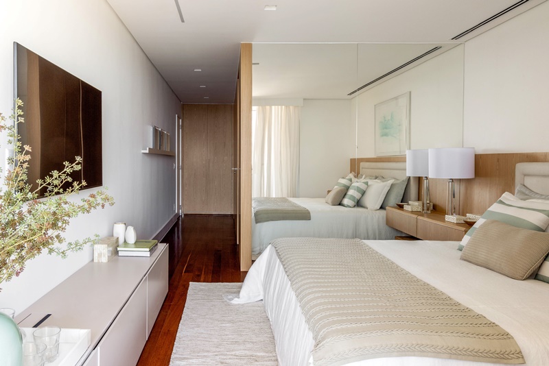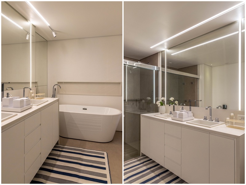 “Do início ao fim, este projeto foi construído com os clientes de forma remota, já que a família mora em São Paulo. Durante todo o período de execução, que durou pouco mais de um ano, os clientes estiveram no apartamento apenas duas vezes. A primeira visita aconteceu na semana em que a demolição foi finalizada e a segunda visita, quando já estava tudo pronto para a família se hospedar. Mesmo assim, todo o trabalho transcorreu na base da confiança, de forma muito tranquila“, finaliza Alessandra.