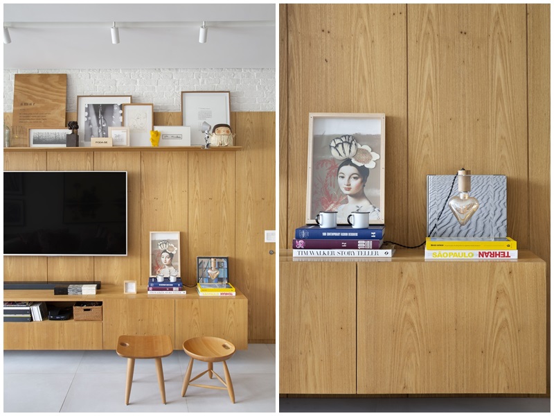 Perfil dos moradores: Andréa (que toca piano como hobby), na faixa dos 50 anos, e suas duas filhas, sendo uma delas universitária, com pouco mais de 20 anos. A outra filha mora fora do Brasil atualmente, mas mantém seu quarto no apartamento. A cliente é uma amiga de muitos anos das arquitetas e já realizou várias obras com elas.