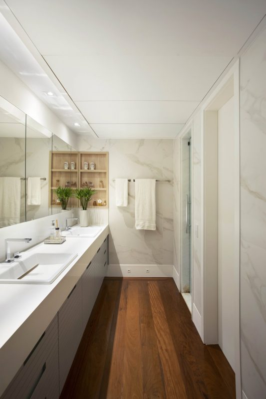 Segundo a arquiteta, o maior desafio deste projeto foi executá-lo em apenas seis meses, considerando o tamanho do imóvel. “Tive que criar soluções interessantes e compatíveis com o tempo que dispunha para a execução da obra“, conta Zaccaro, que também fez o projeto para o terceiro andar da cobertura e no momento está aguardando o ok da prefeitura para iniciar as obras. “Será um espaço de lazer, com piscina, sauna, churrasqueira e área gourmet“, adianta.