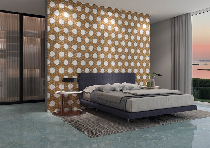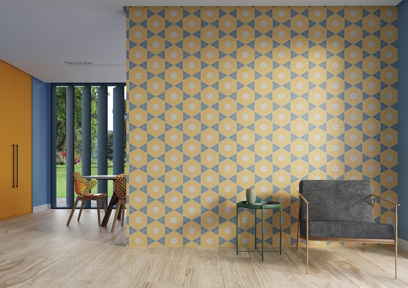 O mesmo conceito de unir o geométrico com o colorido e artesanal pode ser visto na coleção de porcelanatos Marrocos, da Ceusa. A marca, que tem a moda impressa em seu DNA, antecipou tendências em seus produtos 2022. Nesta linha de revestimentos, os complexos mosaicos da cidade marroquina foram a referência inicial. Aqui, em vez de construído com pequenas peças, o mosaico está parcialmente visível em cada peça. O formato losangular foge do convencional e permite desconstruir totalmente o pattern à medida em que a paginação vai sendo feita.