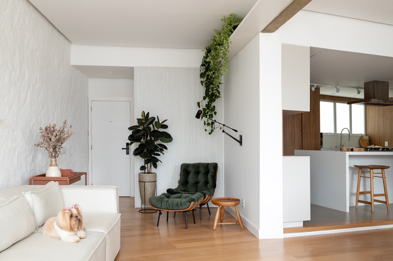 Minimalista, atemporal, contemporâneo. Assim é este projeto da arquiteta Mariana Monnerat, em parceria com Tainá Binato, que reformou o apartamento de 130m², em Ipanema, para o casal Wanessa e Pablo que trabalha em home office e desejava um local agradável para a rotina.