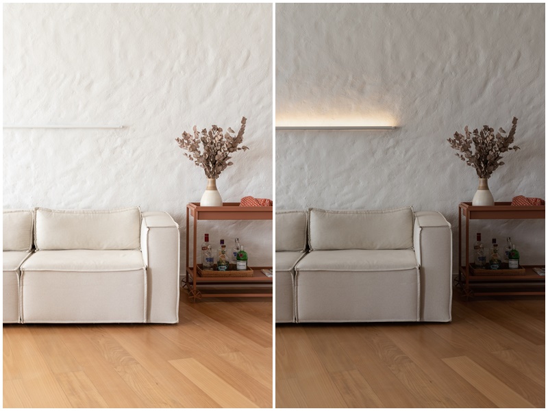 Ao longo do processo, Wanessa se apaixonou por arquitetura e começou a cursar design de interiores. Resultado: além dos dois participarem ativamente do projeto, Wanessa passou a trabalhar nisso também. E literalmente colocou a “mão na massa”, fazendo a textura das paredes da sala e do quarto, o que deu um ar artesanal e único ao local.